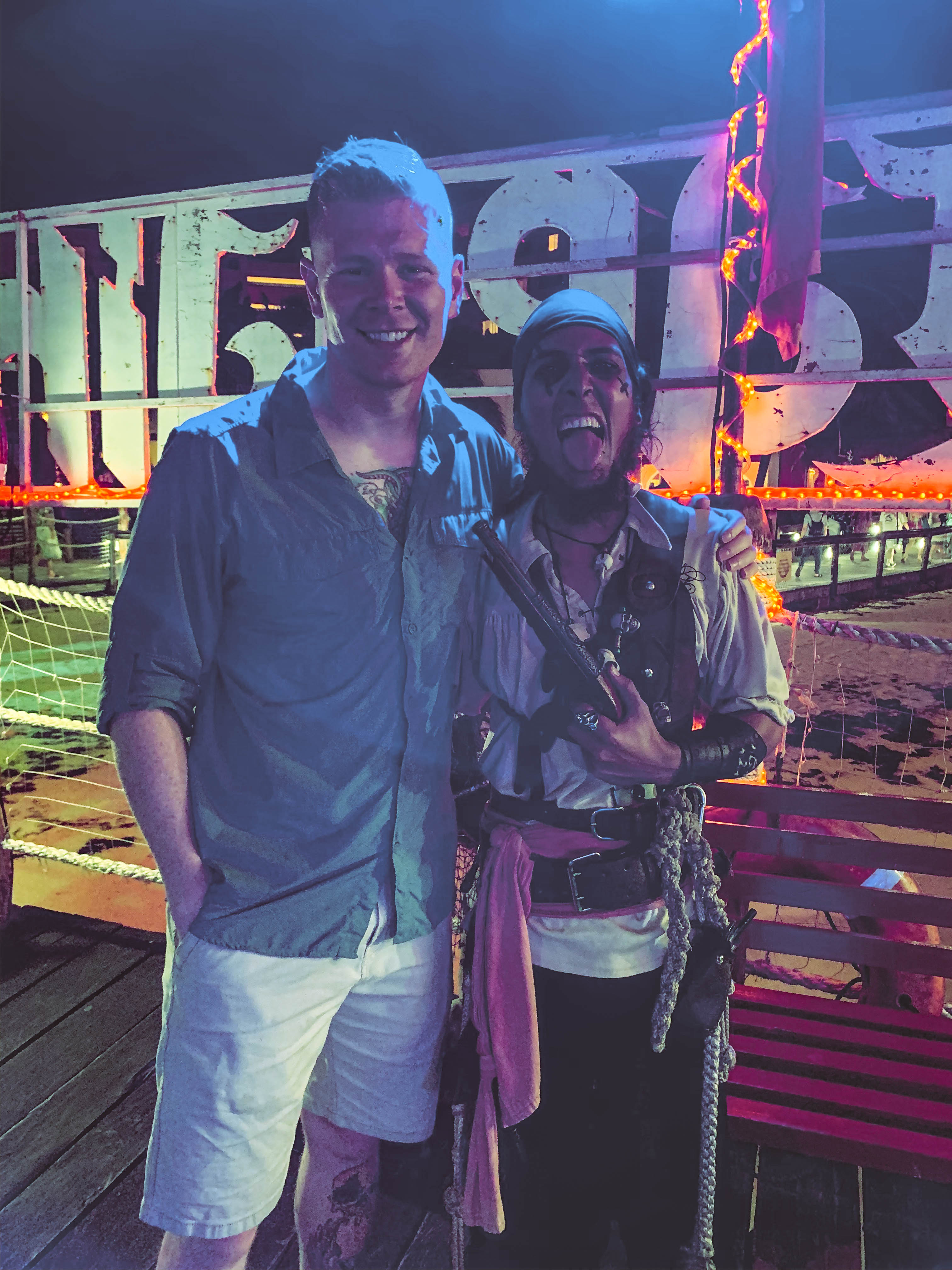 The First day was pretty much wasted due to the residency club thing so we just decided to take advantage of the beach and the all inclusive food and drinks at the hotel for the rest of the day. For dinner that night we boarded Captain Hook‘s ship for a wild pirate adventure. The food was really good, the show was fun (what I understood haha) and we sat next to this really great family from Mexico. They spoke little to none English and we speak little to none Spanish but somehow we found a way to communicate. When the dad found out I was pregnant, he placed his hands on my stomach and sent blessings and praises into the sky for little baby boy. They were the cutest family.
