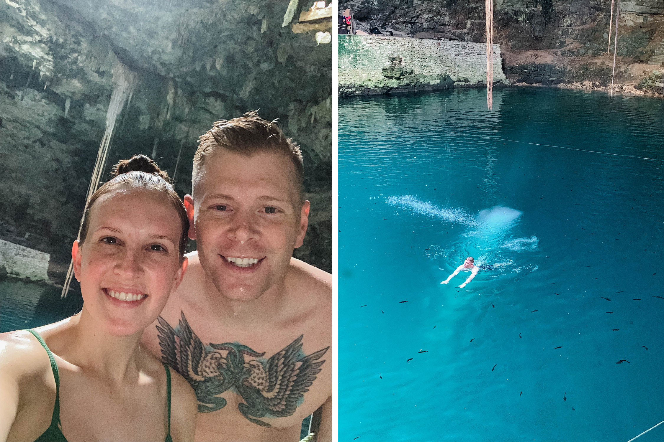 We booked a tour to Hubiku and Chichén Itzá through a company called Xichen. First stop was cenote hubiku. Like many of the cenotes, Cenote Hubiku is considered a sacred place for the Mayan people where sacrificial ceremonies often took place. We learned about shamans and some other fun Mayan facts while visiting Hubiku. My favorite part of visiting Cenote Hubiku was getting to jump into the cool, turquoise water and swimming with the catfish. On a hot day in Mexico, the water felt sooo good.