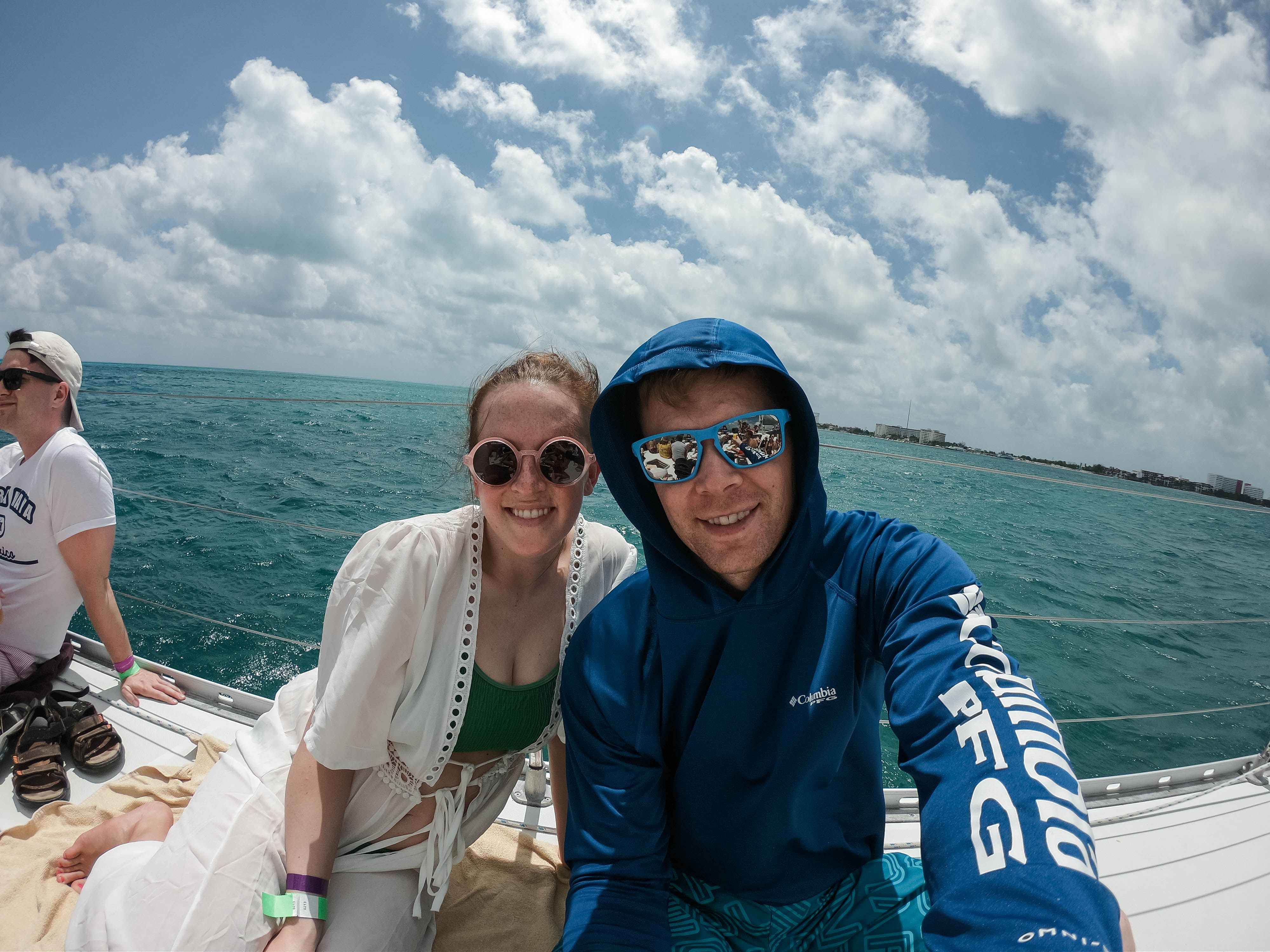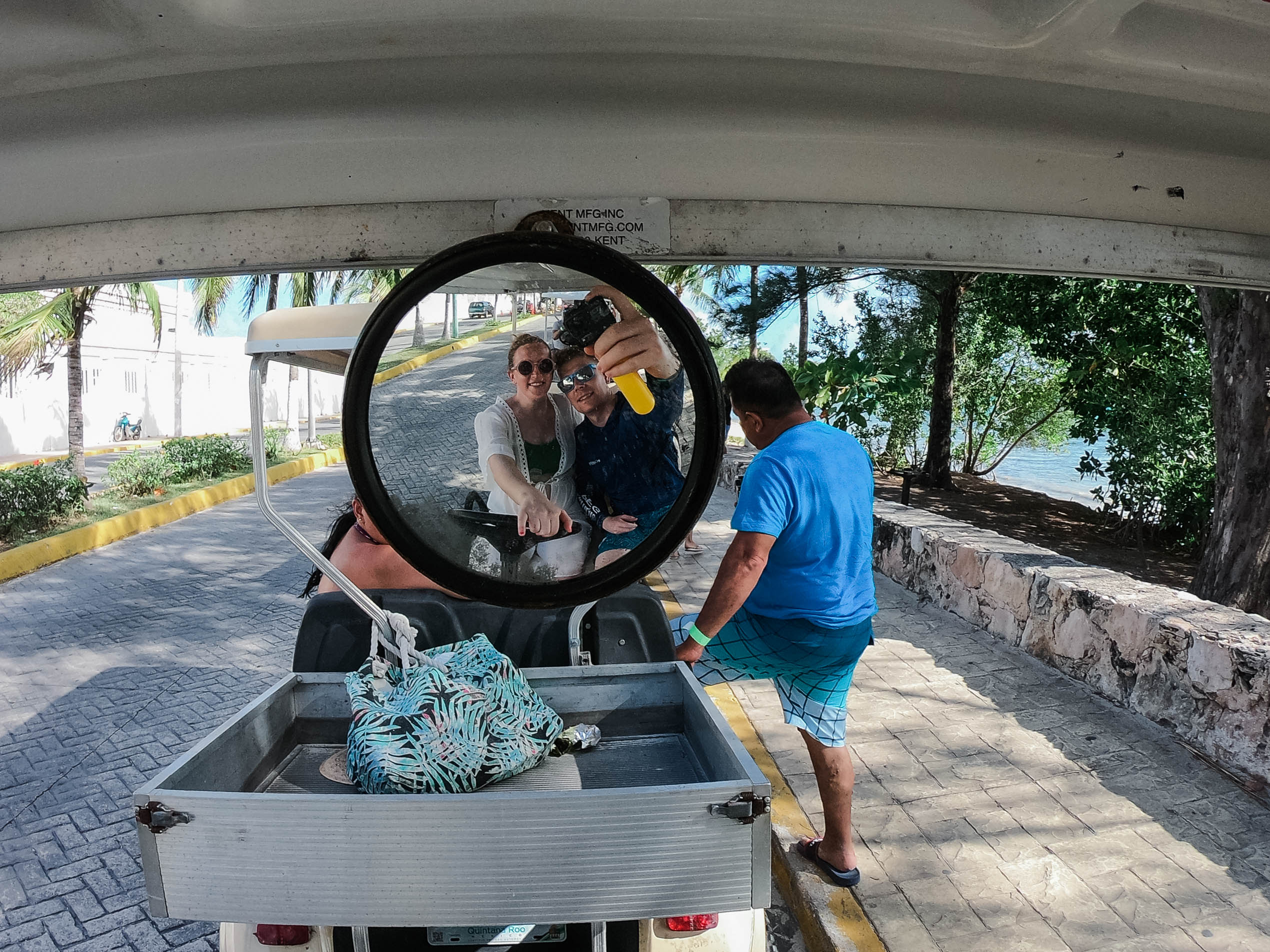 The plan for the day was to sail out, snorkel, drive around the island on a golf cart and return to Cancun while the sun was setting. Unfortunately, it was really windy so we were not able to go snorkeling.  I was really disappointed by this until they let us get out and swim for a little while. Brady and I lasted in the water for about 2 minutes and then got out because we were just getting slapped in the face with water (Pretty sure Brady got a little sinus infection from this).  To make up for not getting to snorkel, we rode ride bikes down to a turtle sanctuary on the island. After the turtle sanctuary, we got into golf carts and drove around the entire island. We were so exhausted after all of our adventures that we spent our last day in Mexico watching Netflix and getting massages (in all fairness it was pouring rain).  Getting away to Mexico before a new baby and Brady taking command was just what we needed and I am so thankful that we got the chance to go.