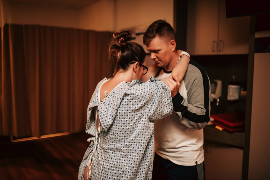 Around midnight contractions were every 2-3 minutes and getting a little more difficult to get through so we decided to head to the hospital. Of course once we got to the hospital the contractions slowed down and I started to feel a little better. I was dilated to a 2 and told to come back when contractions started back up again. I tried really hard to get some sleep but between contractions and adrenaline sleeping felt like an impossible task. I spent most of the night in the tub because it was the only place that helped ease the back pain. I really wanted to stay home as long as possible because my goal was to go as unmedicated as possible but the anxiety of driving to the hospital and the back pain got the best of me. Around 6AM I woke brady up and told him that we needed to get ready to go back to the hospital. I notified my doula Gina and my photographer Cassy that we were on our way again. This time I was dilated to a 6, had a bulging bag and got admitted.