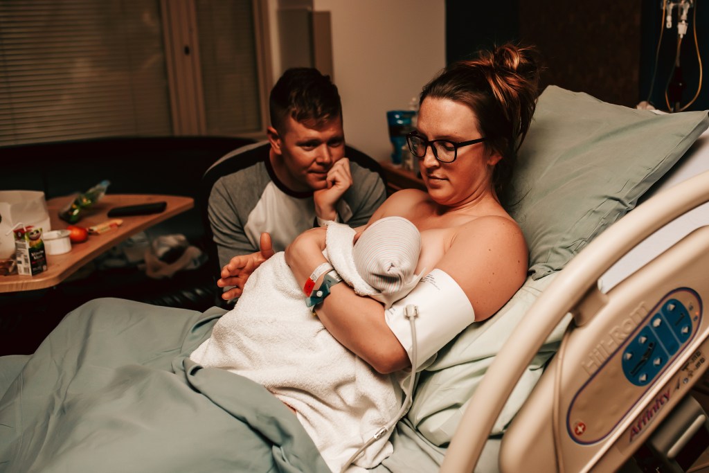 With the epidural in place I was able to take the most wonderful nap. I was checked at 445 PM and ready to push by 5 PM. Archie wasn’t a fan of me being on my back to we had to try a bunch of different pushing positions. Gina was so helpful with pushing positions and we were able to find a spot where Archie was happy. At 810 PM, Archie FINALLY entered this world- weighing 8lbs even and 22.5 inches long. Waiting to hear him cry seemed like the longest few seconds of my life and was the happiest sound when he started to cry. He was so alert and just stared at me for over an hour while on my chest. Meeting the tiny little human that has been growing and wiggling inside of me for the past 9 months was a surreal experience and it is a moment I will never forget.